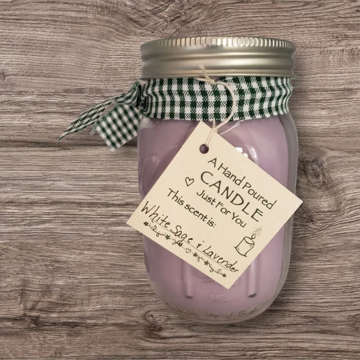 Hand poured Soy Wax Candle with White Sage & Lavendar Fragrance.